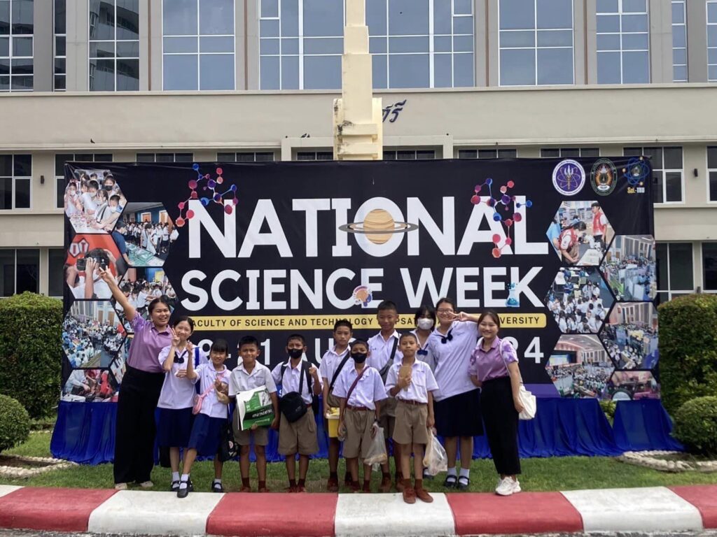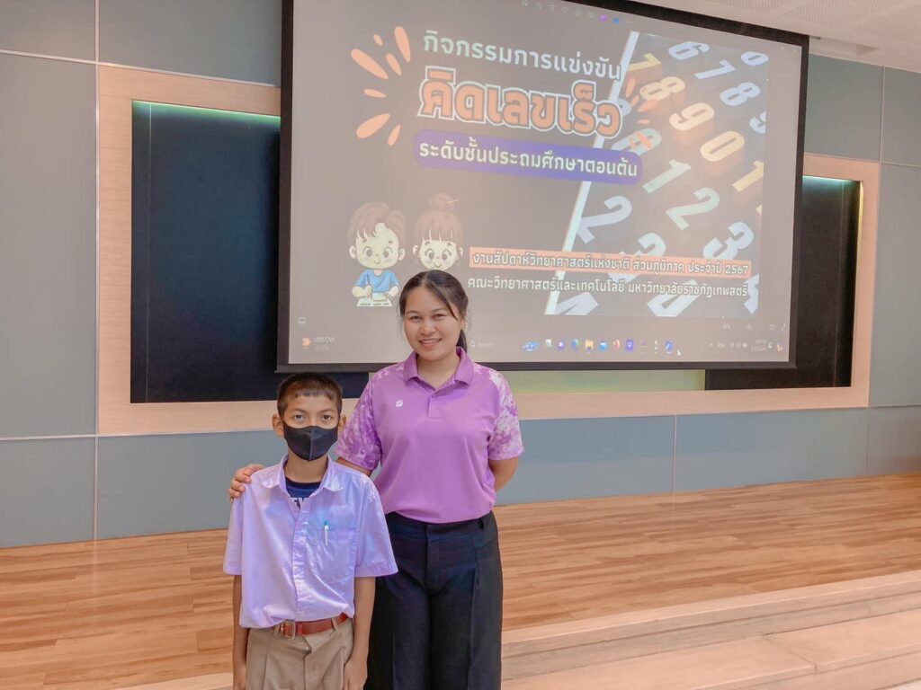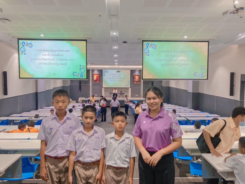 วันที่ 19 สิงหาคม 2567 นางสาวอรทัย มิตรสูงเนิน ผู้อำนวยการโรงเรียนบ้านม่วงฝ้าย มอบหมายให้ นางสาวศิริวรรณ ปัจฉิม เป็นหัวหน้าคณะ พร้อมด้วย นางสาวสุวิมล สาระคำ และนางสาวสุภาวดี คำเหลือ นำนักเรียนจำนวน 10 คน เข้าร่วมกิจกรรมการประกวดแข่งขันทางด้านวิทยาศาสตร์และคณิตศาสตร์ สำหรับนักเรียนระดับประถมศึกษาและมัธยมศึกษา และร่วมชมนิทรรศการทางวิทยาศาสตร์และเทคโนโลยี (Open House) ในงานสัปดาห์วิทยาศาสตร์แห่งชาติ ส่วนภูมิภาค ประจำปี 2567 จัดโดย คณะวิทยาศาสตร์และเทคโนโลยี มหาวิทยาลัยราชภัฏเทพสตรี จังหวัดลพบุรี