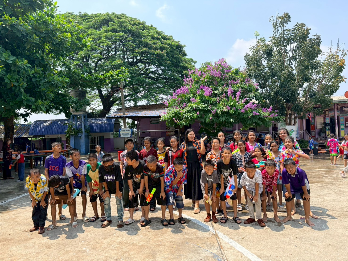 ในการนี้ โรงเรียนได้จัดกิจกรรมนันทนาการให้นักเรียนได้เล่นน้ำสงกรานต์ร่วมกันอย่างสนุกสนาน พร้อมจัดงานเลี้ยงสังสรรค์เพื่อสร้างขวัญกำลังใจและกระชับความสัมพันธ์อันอบอุ่นระหว่างคณะครูและนักเรียน ทั้งนี้ กิจกรรมดังกล่าวมุ่งเน้นการบ่มเพาะให้นักเรียนรู้จักการอนุรักษ์วัฒนธรรมไทย ควบคู่ไปกับการสร้างความสุขและความทรงจำที่ดีในรั้วโรงเรียนบ้านม่วงฝ้ายสืบไป